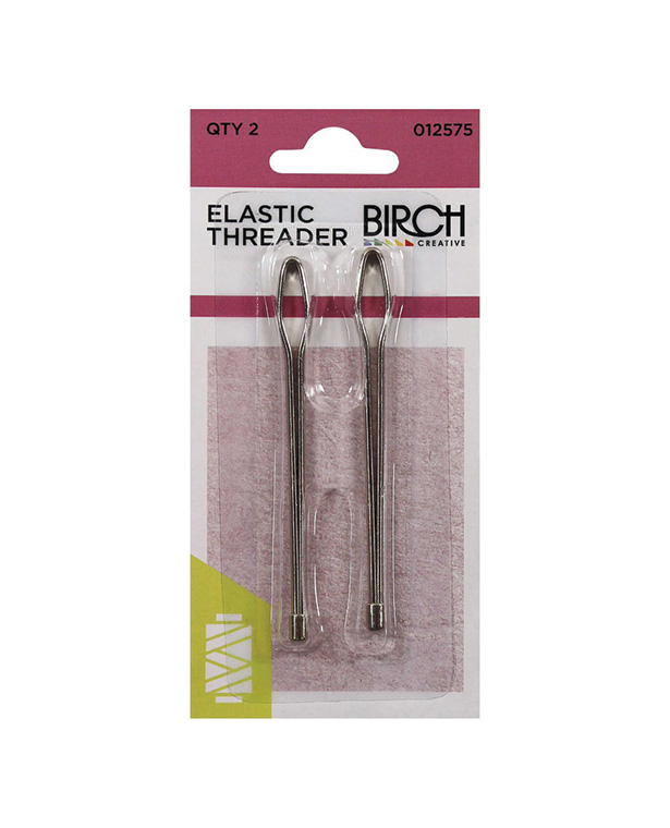 Needle type elastic threader with ball point ends. Pack contains 2 needles.